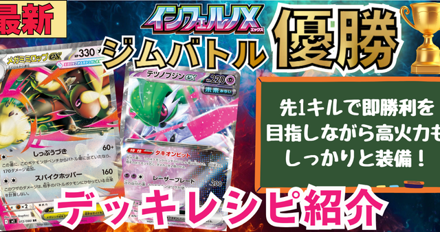 【全81デッキレシピ(その2)】8月6日ジムバトル・新弾バトルその他の店舗大会優勝デッキ集【ポケカ環境】 今回ポケカードラボでは、8月6日にジムバトル・新弾バトル・トレーナーズリーグ・エクストラバトルの日、その他の店舗大会で優勝をした81...