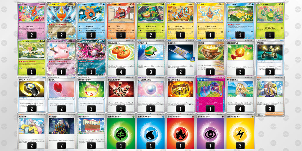 既存の「ガジェットショー」デッキに、新たに超タイプの「ロトム」が2枚採用されているデッキです。