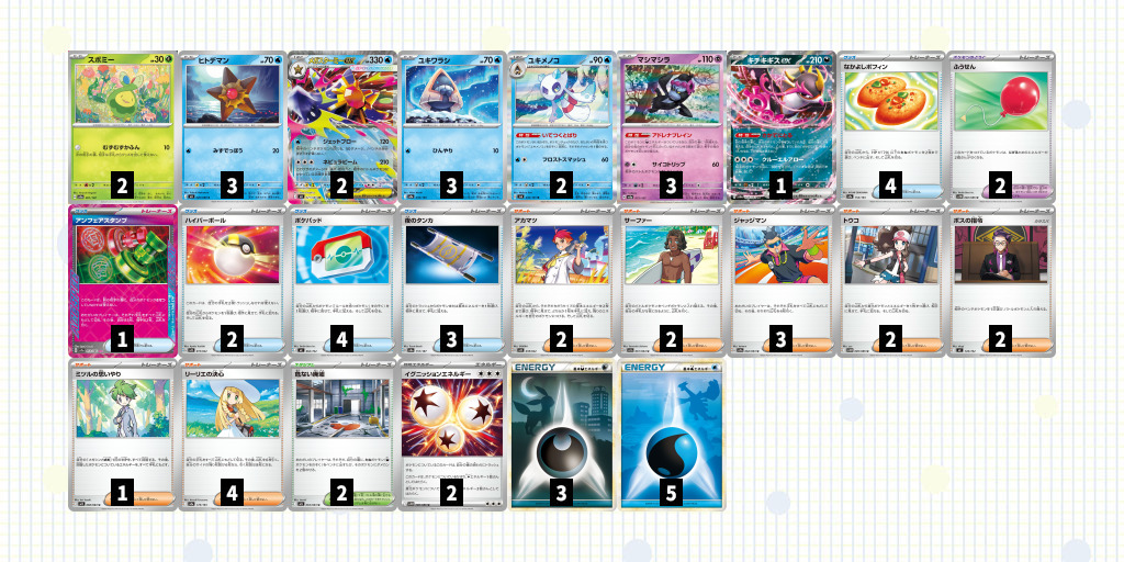 メガスターミーex/ユキメノコ/マシマシラの最新デッキレシピを紹介します。