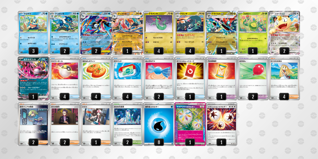 今回ポケカードラボでは、メガゲッコウガex/ドラパルトexの最新デッキレシピを紹介します。