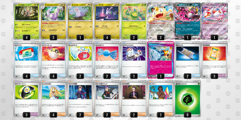 「カイロス」のワザと「ヌメルゴン」の特性を使って相手をいきなりきぜつさせてしまうデッキです!